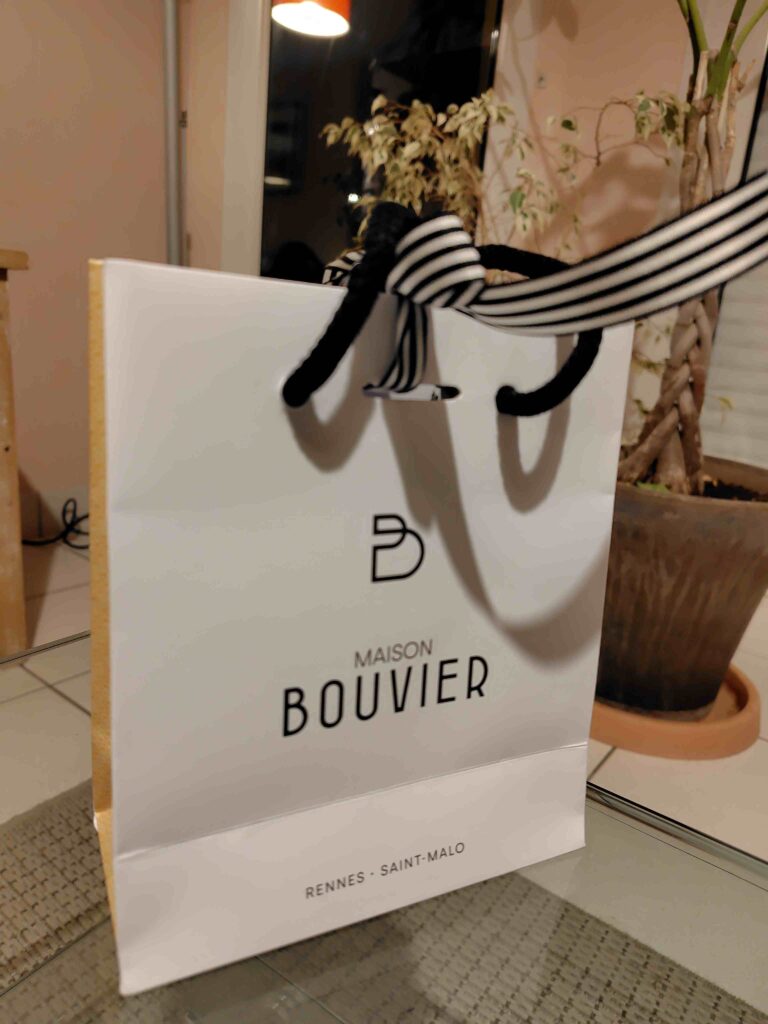 レンヌのチョコレート屋さんの中では、私はこのBouvierとLe Danielが好きなのですが、Le Danielでは紙袋が有料なのに、Bouvierは無料で、しかもかわいいリボンもつけてくれたので、ちょっと得した気分になれます。しかも10ユーロ以下の小さい贈り物になるようなものもいろいろあるので、おみやげ探しにもいいお店です。