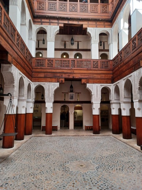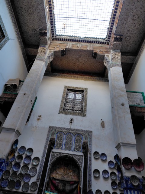 フェズには、モスクや王様の住処などいろいろ見どころがあるのですが、入れるところが少なくて、外から門を眺める感じが多かったです。コーランを教える学校は、中に入って素晴らしい建築を見たり、学生に与えられた小さな部屋を見たりできますが、マラケッシュで同様の学校を見たので、特に感激というほどではなかったです。