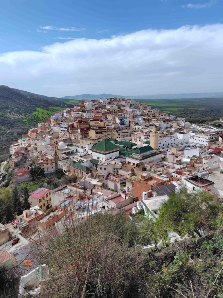 次に訪れたムーレイイドリスは、この場所にイスラムの国を作ったイドリス1世のお墓があることで有名な町です。イドリス1世はもともとメッカの方の人だったそうですが、戦いに負けてこの地までやってきて、ベルベル人に受け入れられて789年に新たな国を作ったすごい人だそうです。