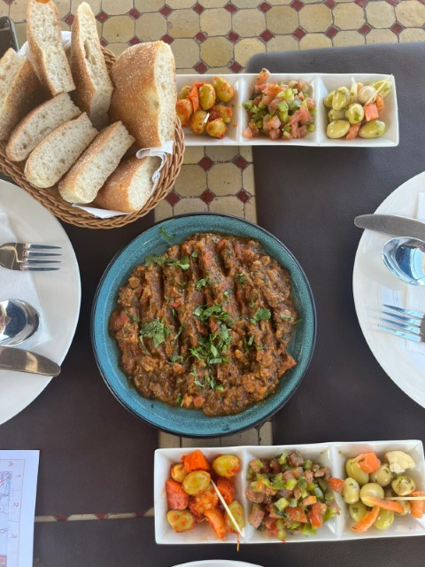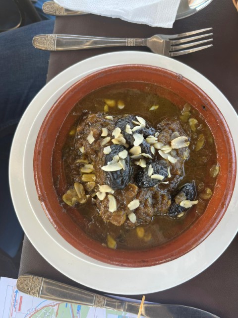 小さなレストランYacoutでは絶品ラクダのミートボール入りのご飯にタジン、パスティーヤ(シナモン味のチキンの入ったパイ 私は苦手)をいただきました。ラクダは豚のような味わいで、おいしかったです。
