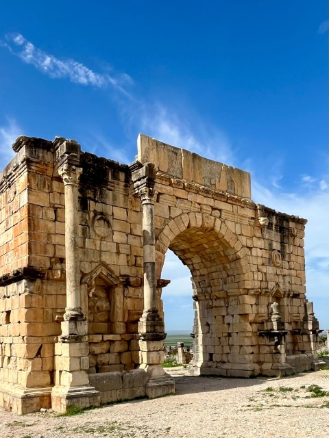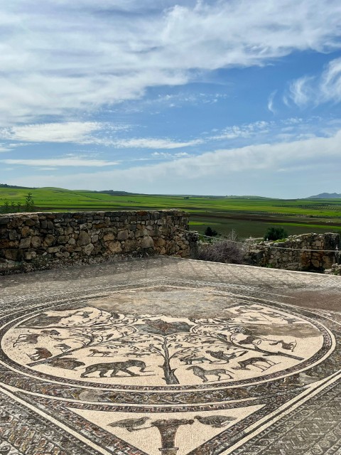 一番素晴らしかったのはボルビリスです。ここは紀元前3世紀ころにローマ人が作った町だそうで、床に施されていたモザイクがきれいに保存されています。眺めの良い丘にあり、ローマの石の建築物が一部復元されていて、アラブ以前に人々の生活があったことを思い出させてくれます。