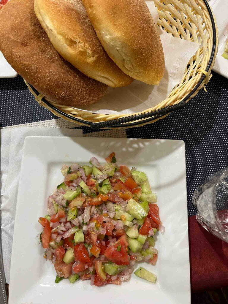 あとはシンプルなサラダが好きです。お店によって多少の違いはあれど、きゅうり、トマト、玉ねぎなどが小さく刻んであって、コリアンダーかパセリの葉っぱやレモンなどとあえてあって、爽やかです。