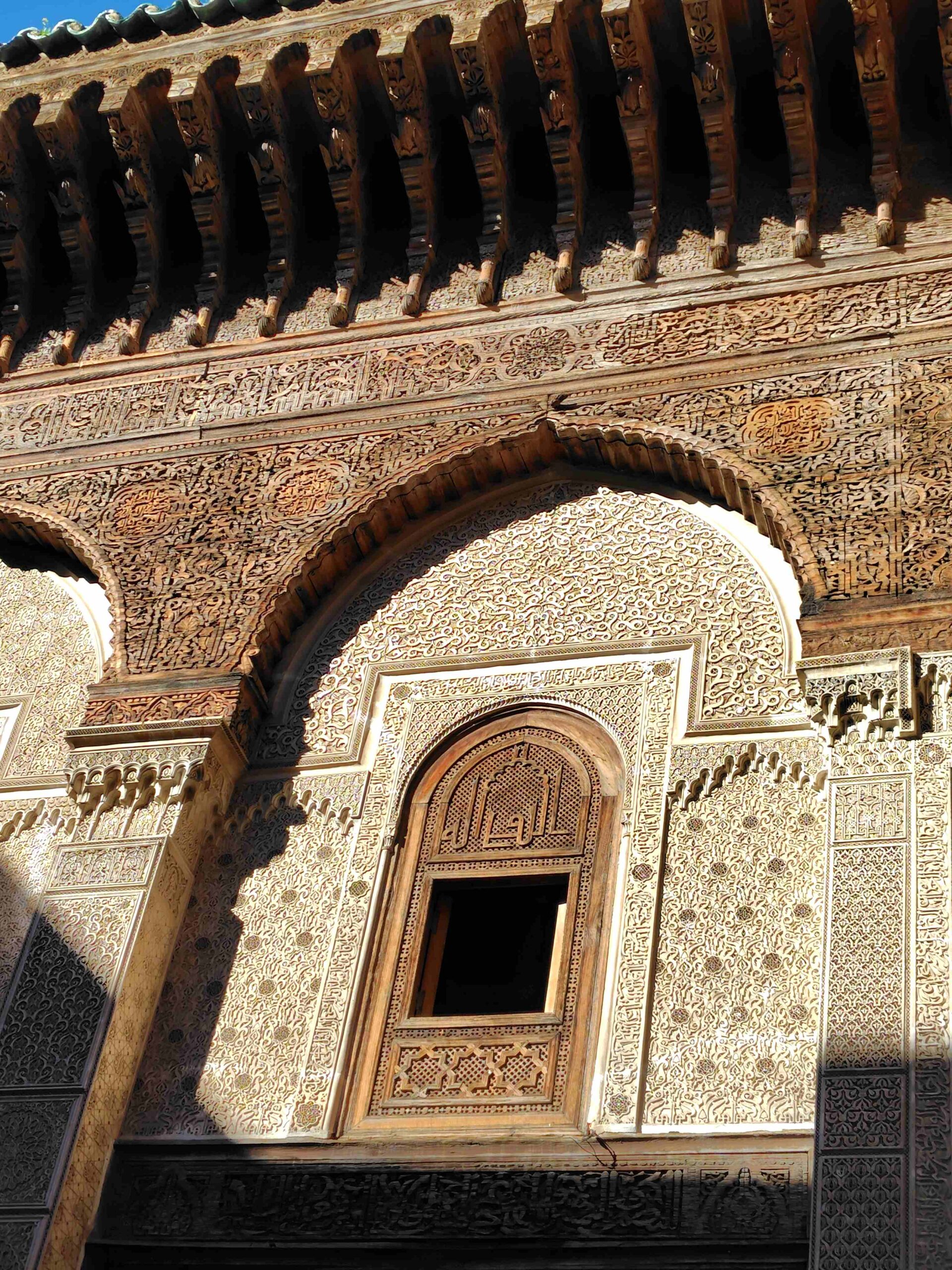 フェズには、モスクや王様の住処などいろいろ見どころがあるのですが、入れるところが少なくて、外から門を眺める感じが多かったです。コーランを教える学校は、中に入って素晴らしい建築を見たり、学生に与えられた小さな部屋を見たりできますが、マラケッシュで同様の学校を見たので、特に感激というほどではなかったです。