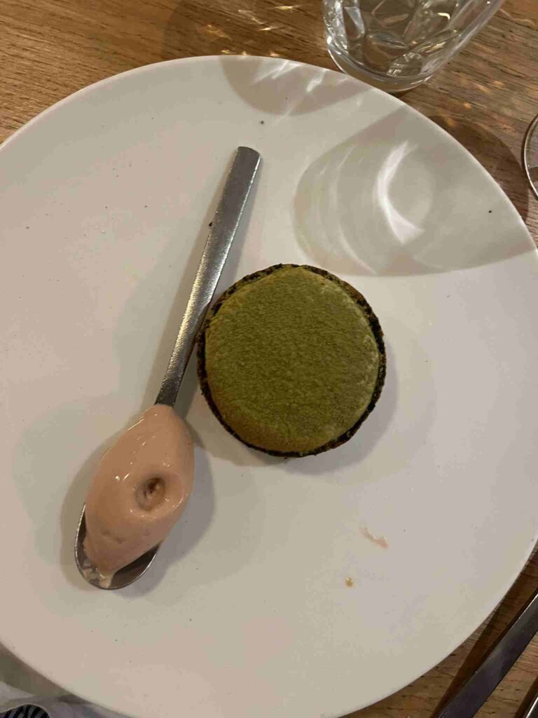 私はビスクのスープを前菜に、牛肉をメイン、ミニマドレーヌ(インフュージョン付き)をデザートにしました。